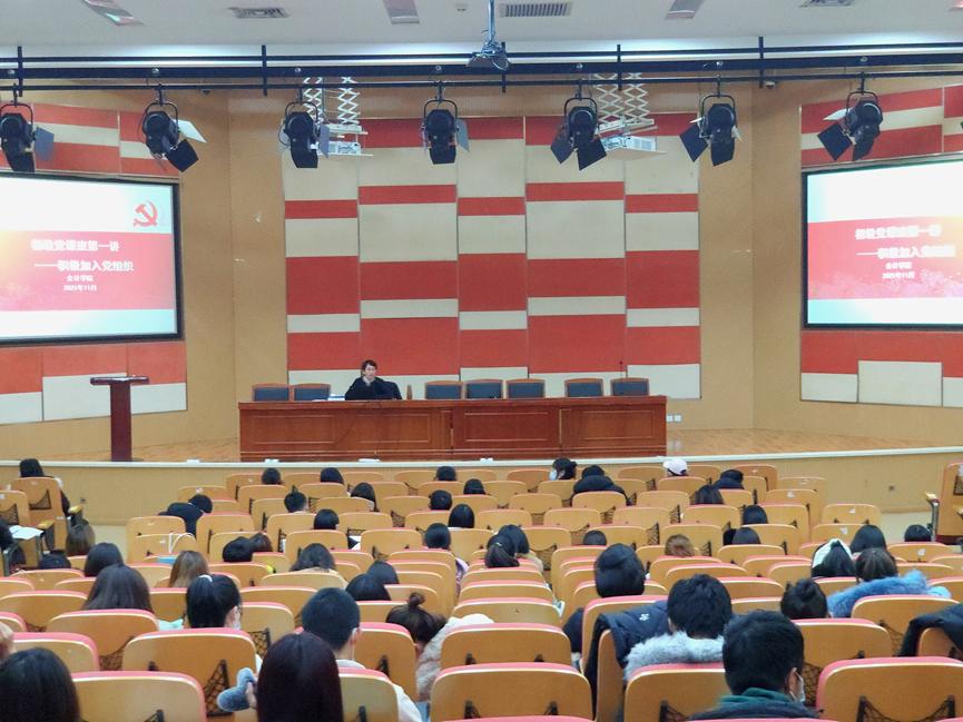 党委书记刘艳荣老师、学院党委副书记吴忠华老师出席,刘艳荣书记为入党积极分子讲授开班第一课,168名入党积极分子参加了此次培训,培训由辅导员刘娜主持。
