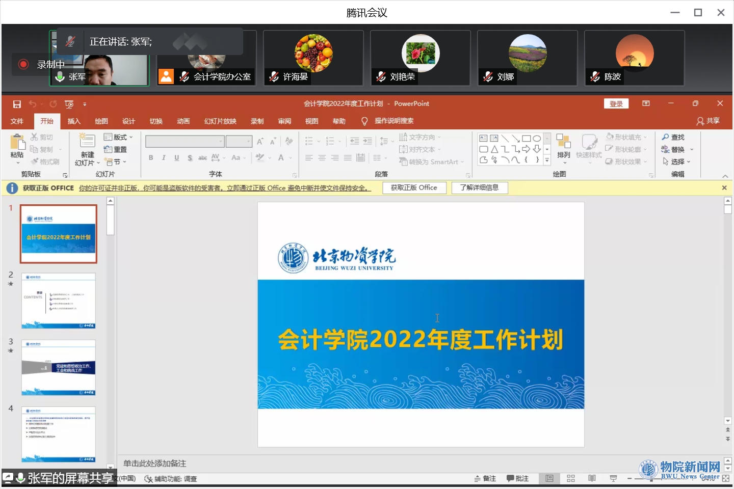 2022年工作计划从党建工作,学科建设与科研工作,人才培养和教育教学工作,学生思想政治教育工作等四个方面进行了交流。