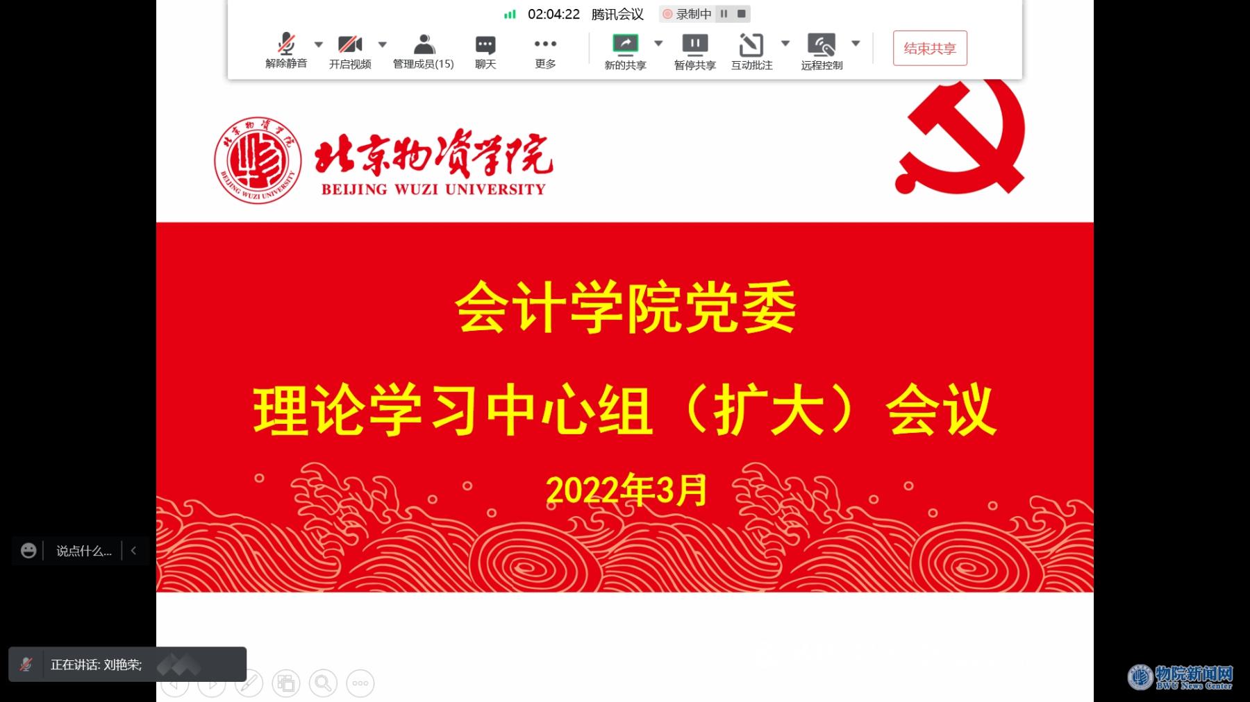 召开理论中心组(扩大)学习会议,专题进行学校治理体系的学习研讨,并进行学校2022年工作要点的学习和学院工作重点的讨论。学院党委委员,党支部书记,院长助理,系主任、副主任通过腾讯会议线上参会,会议由偷拍论坛