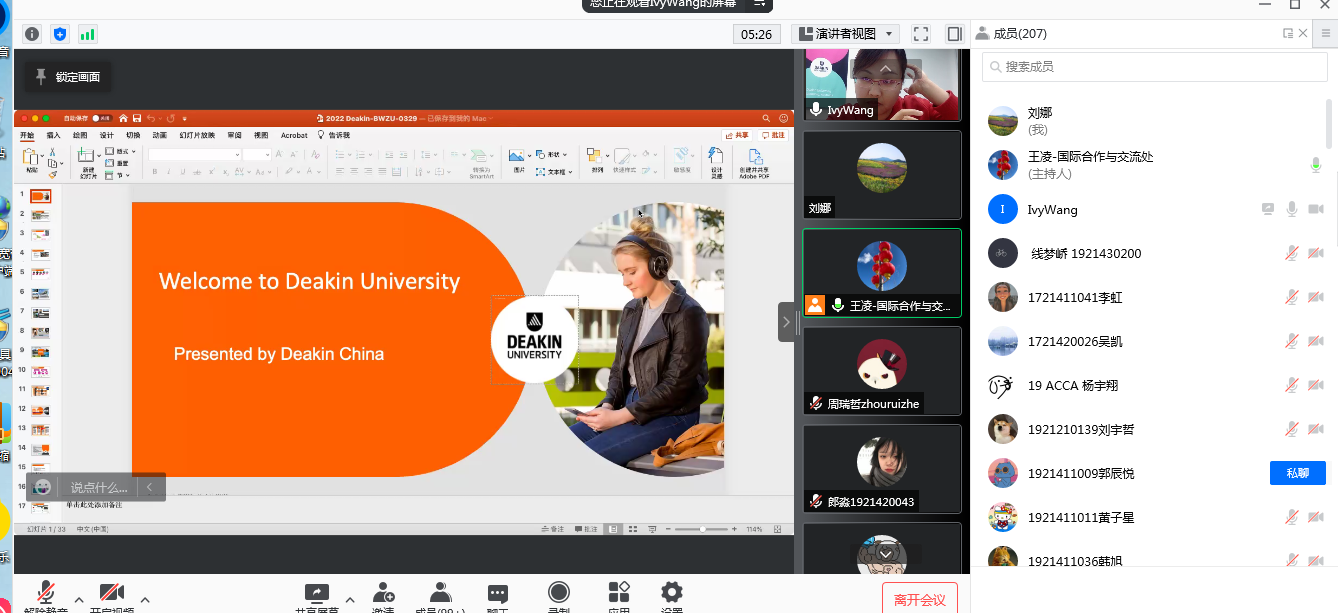 与国际学院采用线上会议的方式联合召开与澳大利亚迪肯大学合作项目宣讲会,特邀迪肯大学国际部北京办事处王宁宁老师对迪肯大学本科双学位联合培养项目进行介绍和政策解读。偷拍论坛