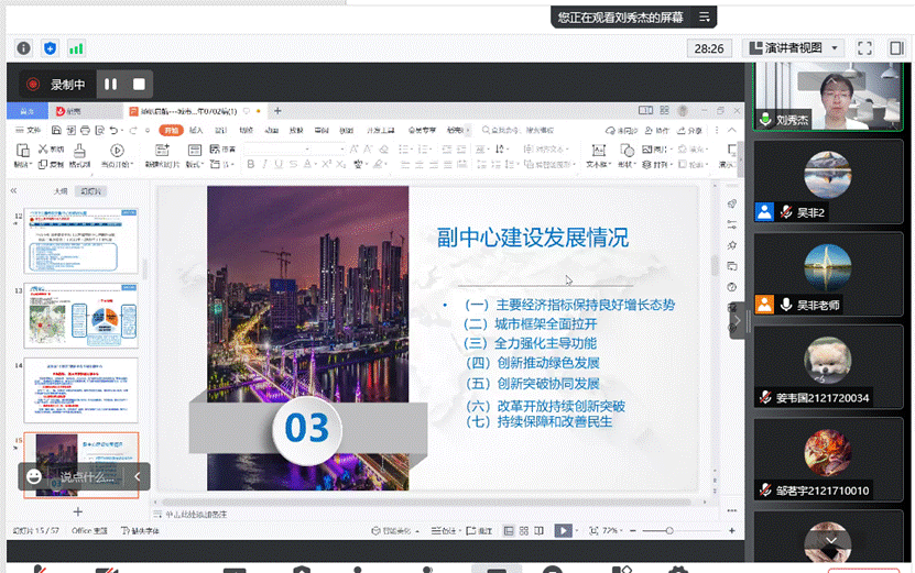 刘秀杰副主任介绍了副中心的由来、功能定位与演变历史,对中央批复的副中心控规和北京十四五规制副中心内容进行了解读,分享了副中心综合交通枢纽、东六环入地改造和台湖特色小镇的建设成就。刘秀杰副主任讲座图文并茂、数据翔实、将副中心国家战略讲解的深入浅出、形象生动,让师生更加了解偷拍论坛