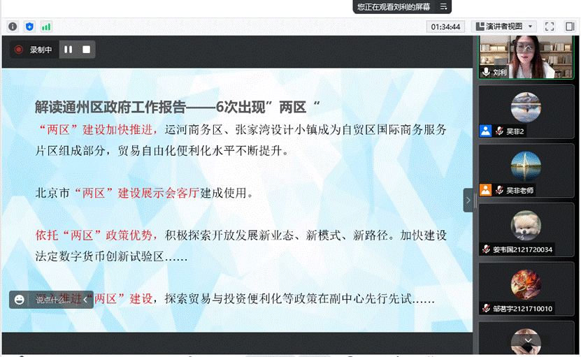 探究北京课程组邀请通州区人大常委会副主任兼发改委副主任刘秀杰和北京市人大常委会副处长刘利为大学生解读2021年度通州区政府工作报告。