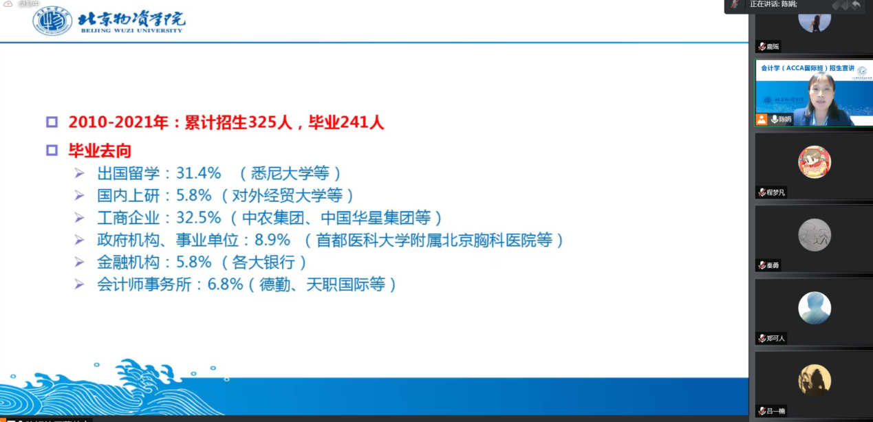 党委书记刘艳荣、院长张军、副院长陈娟、副书记吴忠华和学校国际处副处长吕一楠、ACCA(特许公认会计师公会)华北教育及学员发展主任范玉涵、会计系主任郑可人、财务管理系主任吴非,以及ACCA国际班优秀学员代表参加了会议,宣讲会由副院长陈娟主持。