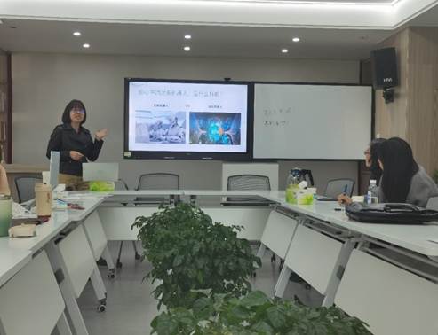 金曼老师对青年教师的现场展示和教学设计进行了点评与指导,提出了专业的意见和建议,从互动、现场展示、增加板书等教学方式、教学手段几个方面给出了具体指导意见。同时,陈娟副院长和王丹老师也从时间把控等方面提出了建议。