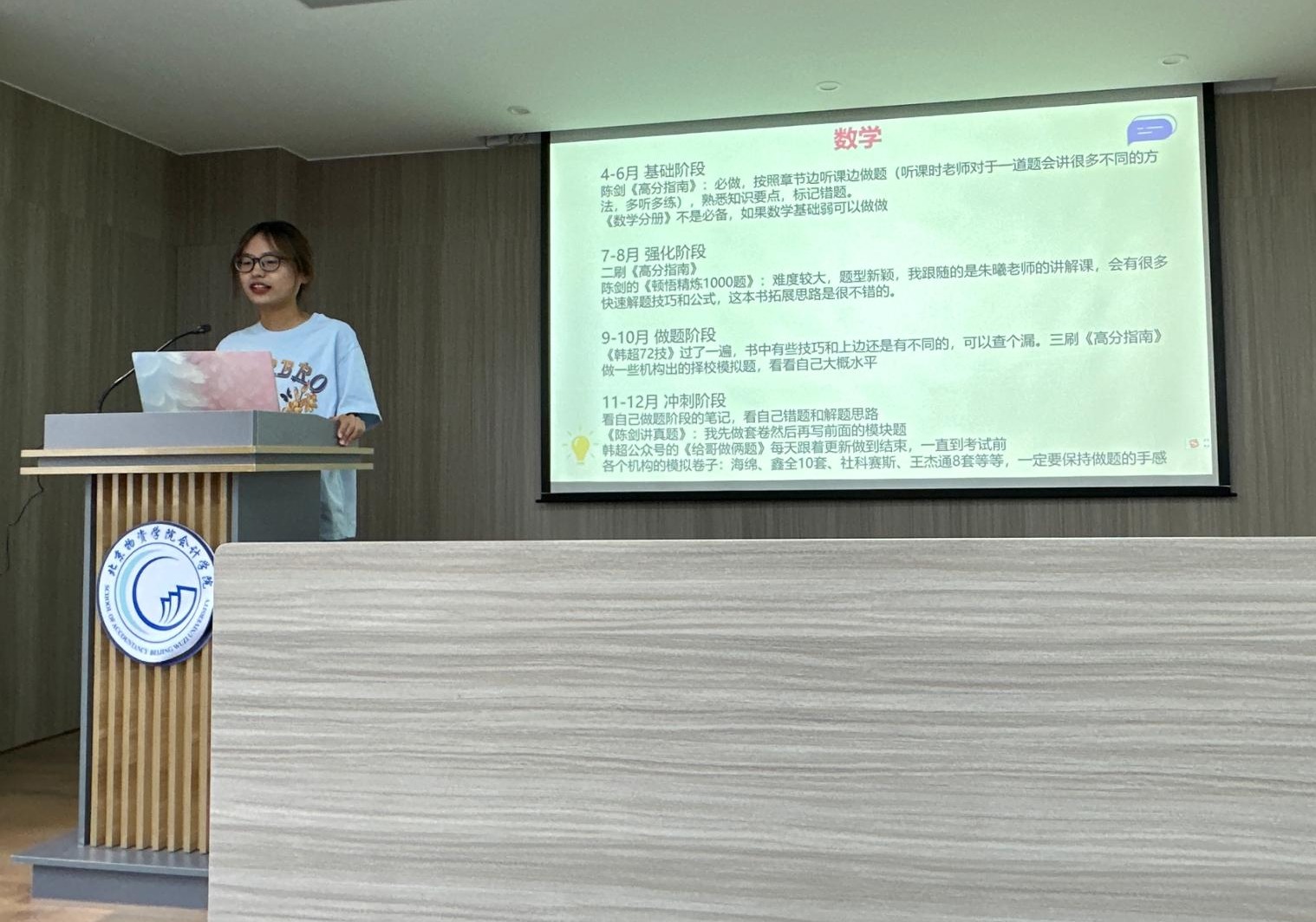 成功考上华北电力大学会计专硕的19管会2班单珺君分享了高分上岸的经验。单珺君就自己的择校选择和备考计划与与会同学进行了交流,单珺君表示在选择研究生学校时一定要关注近五年学校录取比例,结合自身备考情况、学校分数线、实践条件科学择校。