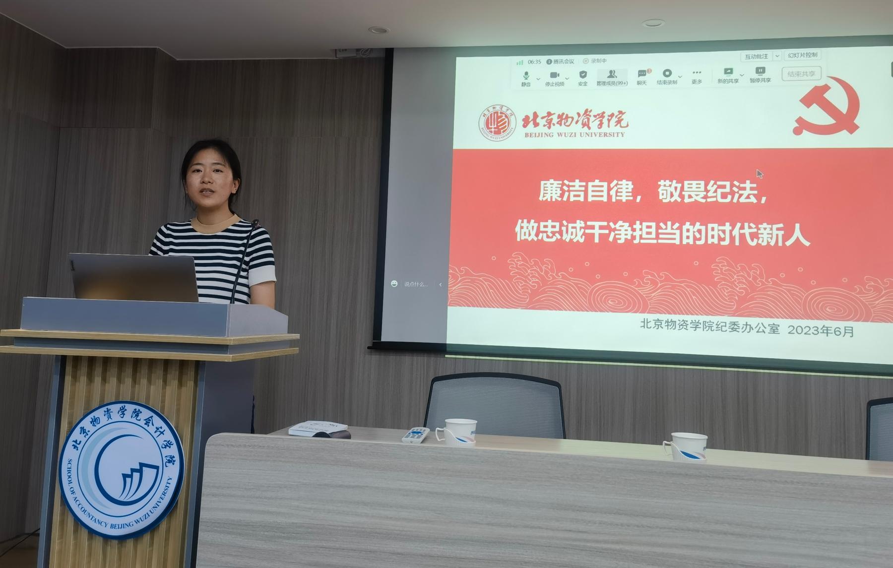 会上,学校纪委办公室赵嘉敏老师为毕业生们进行廉洁就业教育。赵老师提醒同学们要系好廉洁的“第一粒扣子”,告诫同学们在日后的工作、生活中务必坚定信念、廉洁自律、遵纪守法、不忘初心,做忠实干净的时代新人,在工作岗位中努力实现自己的人生价值。