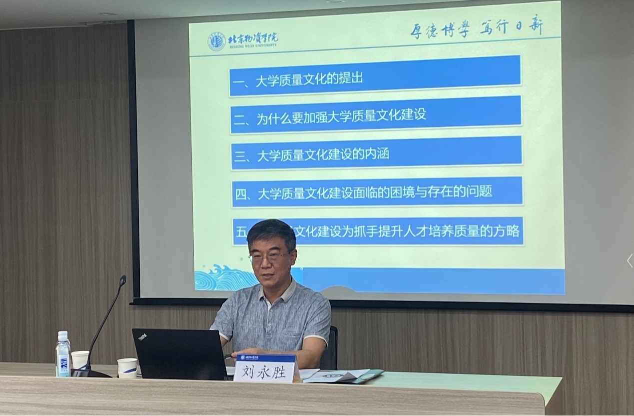 针对质量文化建设面临的困境和存在的问题,刘永胜副院长强调,推进质量文化建设,要完善高校的制度建设,深化制度认同;要强化质量意识共同体,引领带动全体师生质量意识共同体的形成。他希望,学校营造良好的质量文化建设氛围,激发师生参与质量文化建设的热情,将质量文化理念落到实处希望全体教职工将大学质量文化内化为价值追求和行动自觉,为提高人才培养质量贡献力量。