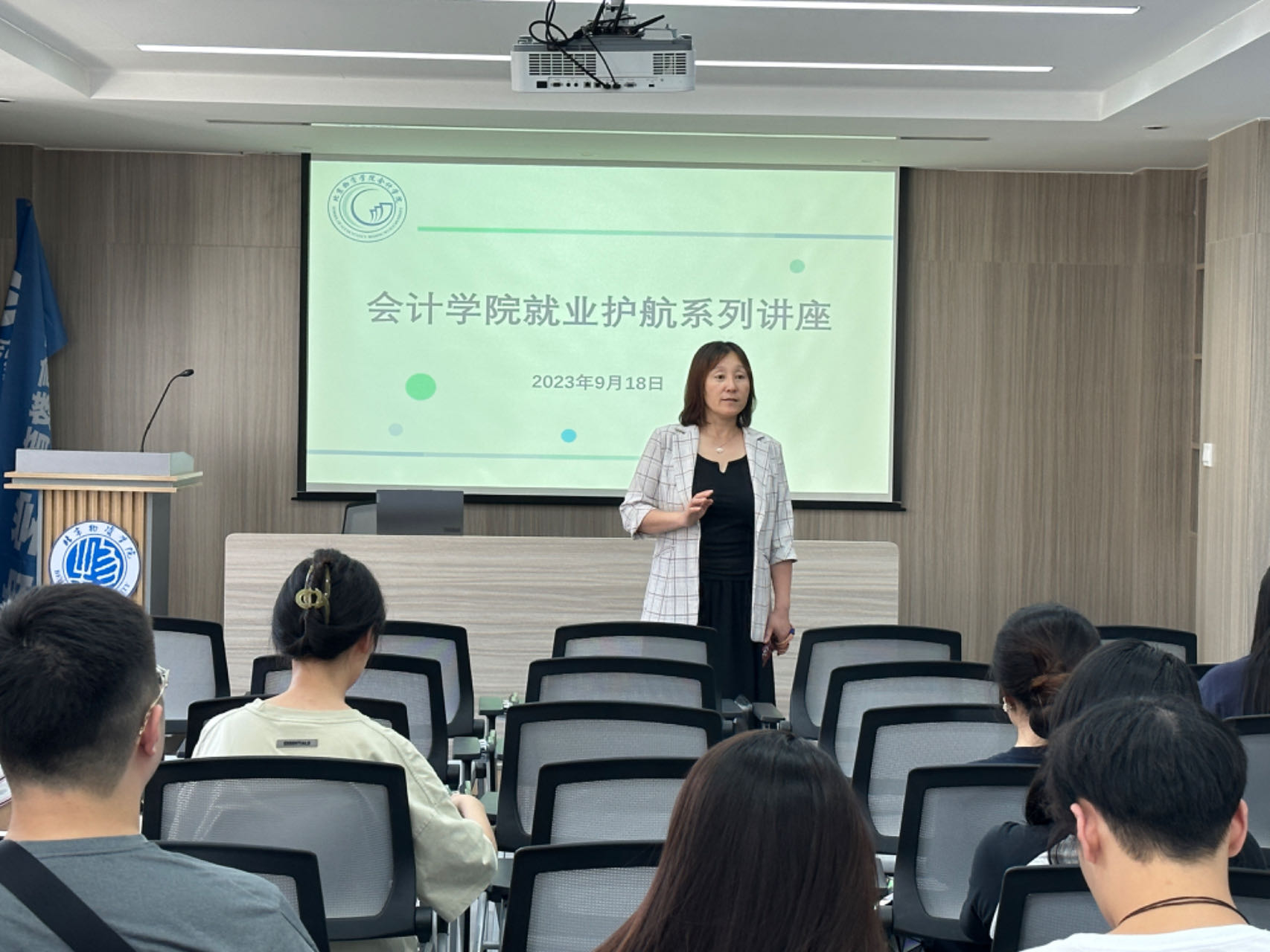 在科研楼300(党员之家)举办就业护航系列讲座之2024届公务员备考指导。本次会议特邀请导氮教育名师冯斌主讲,会计党委副书记吴忠华、就业创业辅导员王鹏莉和2024届毕业生一同参加会议。