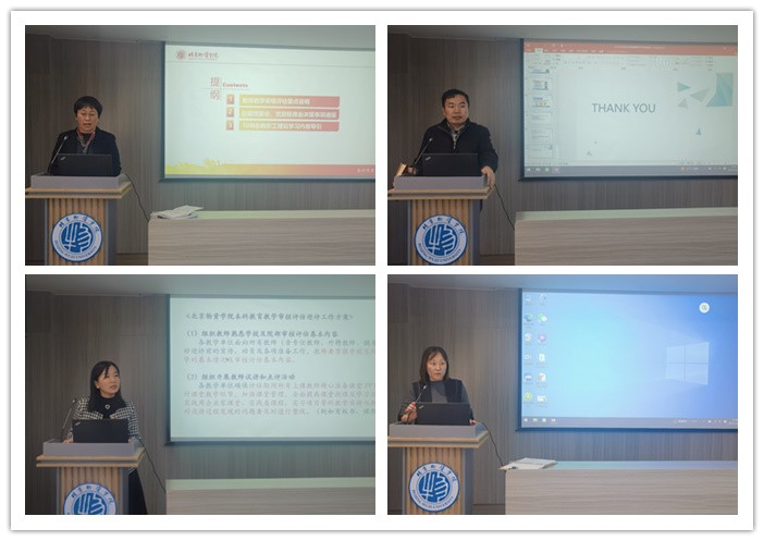 迎评工作具体安排两个方面着重进行了部署。她围绕方案的主要变化、评估分类、审核评估体系等方面对审核评估的基本要求进行了详细解读,就审核评估方式、正式评估及后续安排等关键要点等作了详细介绍,并传达了学校教育教学审核评估迎评工作部署会精神。她强调,本科教育教学审核评估以二级学院为主体,学院全体教师要统一思想、高度重视,充分发挥作用,把课程组织好、把材料完善好、把应知应会内容学习好;全院上下要加强协作,对标对表,查漏补缺,努力把工作做实做细,高质量完成评估工作。要以迎评工作作为契机,真正实现以评促建、以评促改、以评促管、以评促强,全面落实立德树人根本任务。