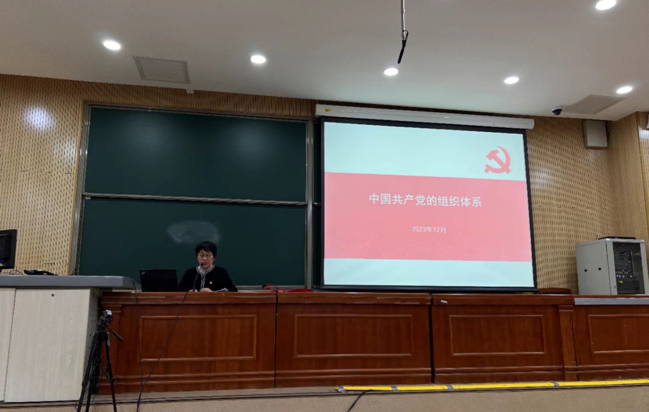 在党的组织体系部分,刘艳荣书记详细向同学们介绍了《中国共产党章程》中关于党的组织体系的规定,阐述并解读了由中央组织、地方组织、基层组织构成的严密组织体系及各级组织发挥的作用,并结合学院基层党委构成框架,让同学们对组织体系有更深入更直接的认识。