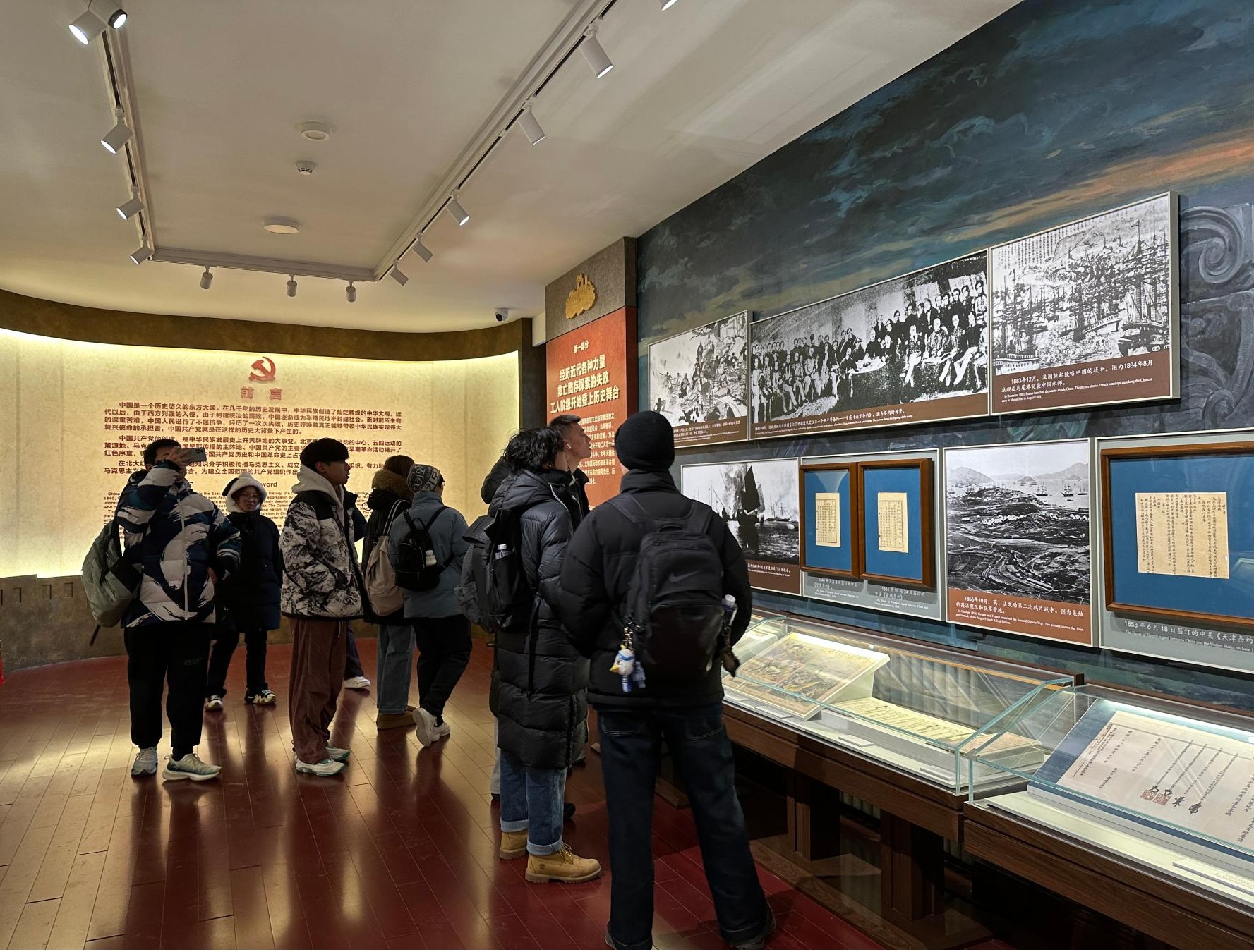 北大红楼是新文化运动和五四爱国运动的主阵地,也是中国共产党早期的重要活动地。走进革命旧址,触摸历史文脉,民主科学的呼声犹在耳畔,激扬文字的身影近在眼前。一件件带有历史烙印的展物,一幅幅高度还原的场景,一段段生动写实的视频,同学们在讲解员的带领下,追寻红色印记,身临其境地学习中中国共产党发展早期的峥嵘岁月和奋斗历程,感悟伟大建党精神。