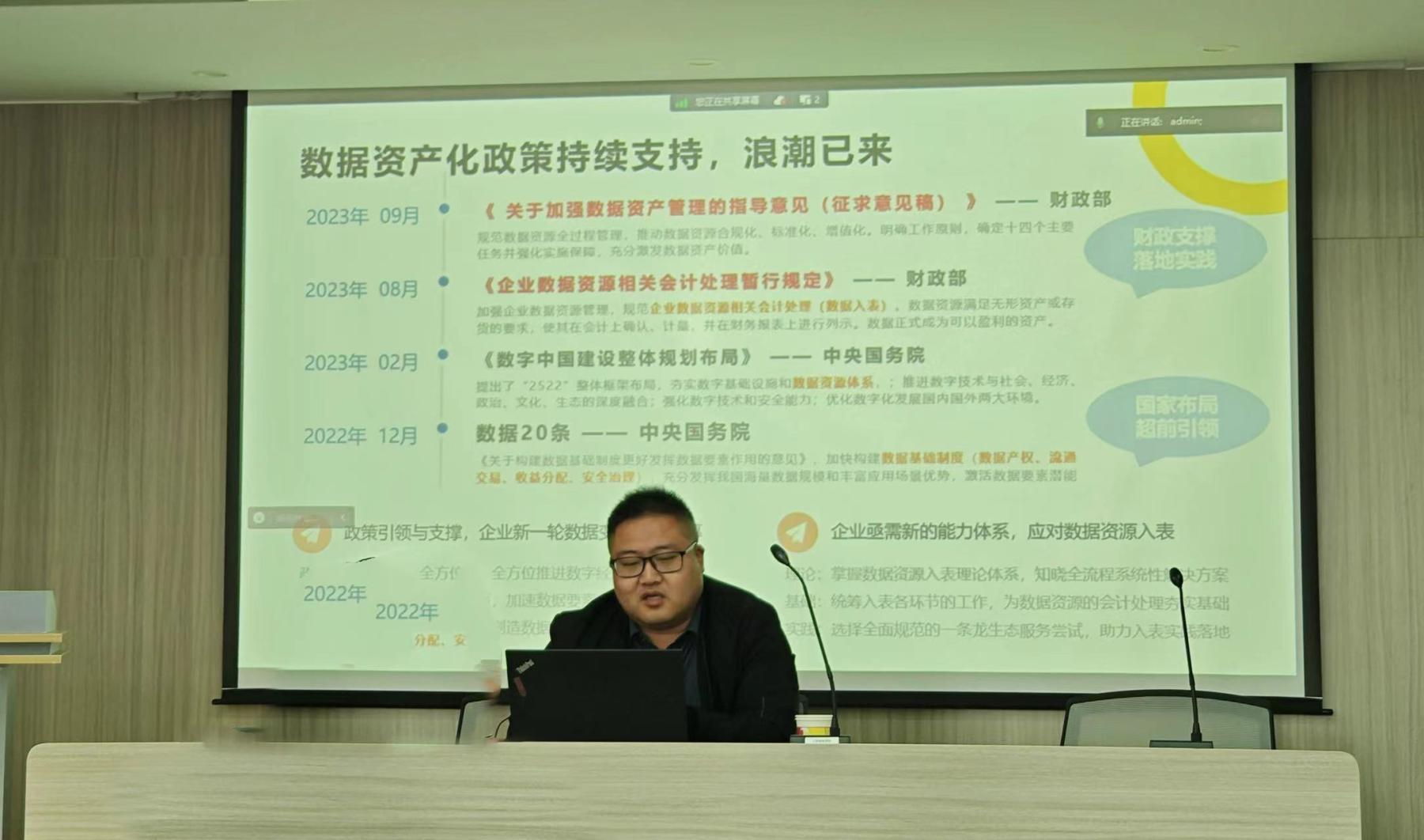 首先,夏东先生对数据资产化的政策背景进行了深入解读。他详细阐述了《企业数据资源相关会计处理暂行规定》等政策的制定背景、主要内容及适用范围,使与会者对数据资产化的政策支持有了更为清晰的认识。随后,夏东先生对数据资产入表进行了详细解读。他通过企业数据资产形成路线图的介绍,展示了数据资产入表对企业的核心价值。夏东先生指出,数据资产入表不仅是对国家政策的响应和市场趋势的追随,更是企业数字化转型的实质性推动。在数据资产评估环节,夏东先生分享了企业数据资产价值评估的方法及实施流程。他强调,准确评估数据资产的价值,对于企业的决策和战略制定具有重要意义。