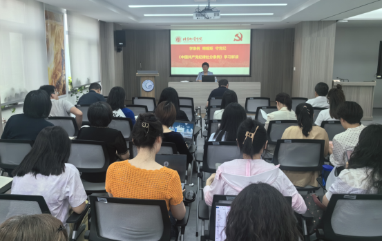 在科研楼300会议室上党纪学习教育专题党课,学院全体教职工党员参加学习。此次专题党课丰富学习形式,采取党委书记和党支部书记集体备课的方式,由学院党委书记和党支部书记联合授课,通过条例学习与案例分析相互支撑,共同对《中国共产党纪律处分条例》进行深入解读,打造“融合式”党课,切实提升学习的针对性和有效性。