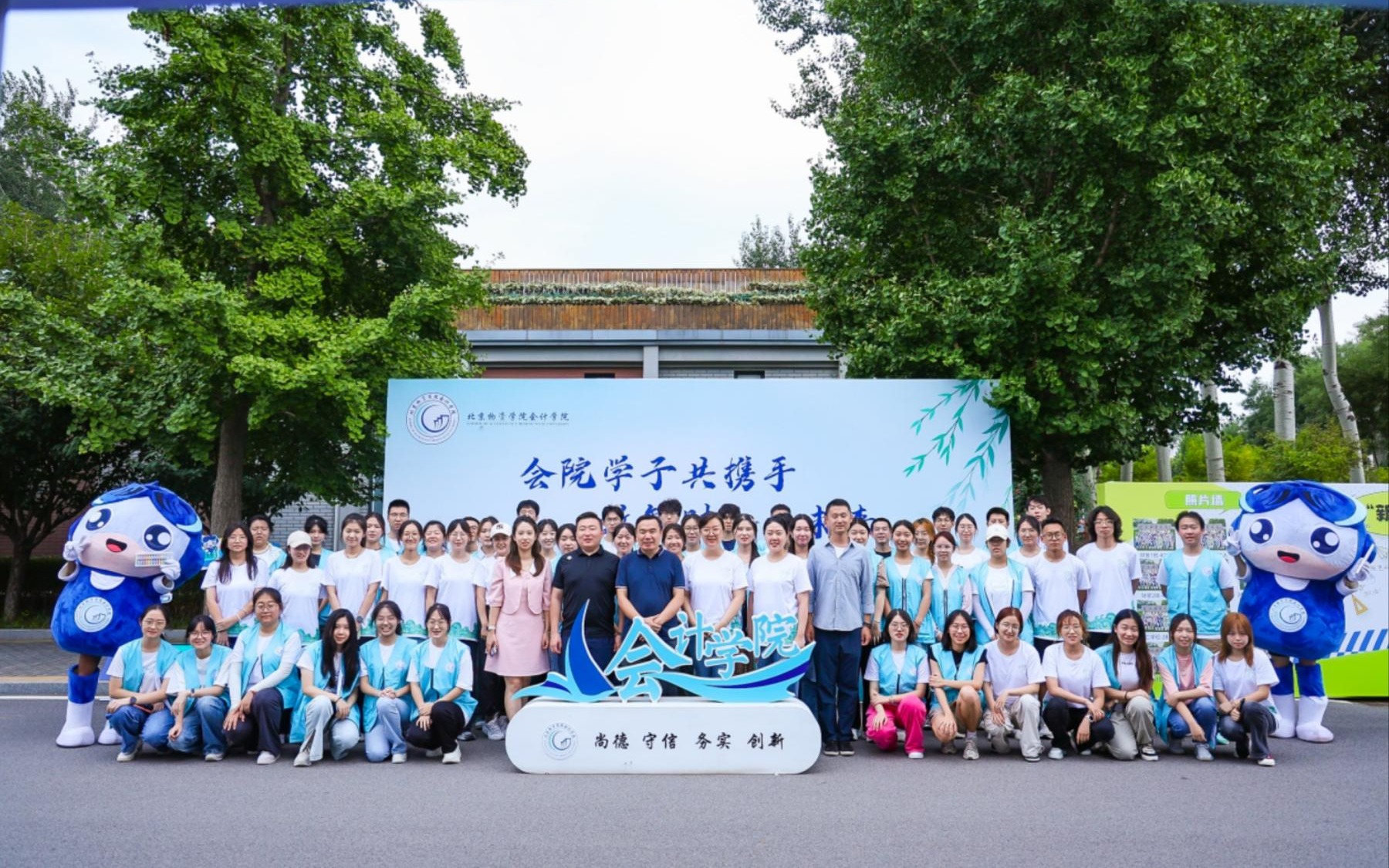 报到处,学院的吉祥物“会小算”早已在此热情守候,与每一位新生共同定格下与偷拍论坛