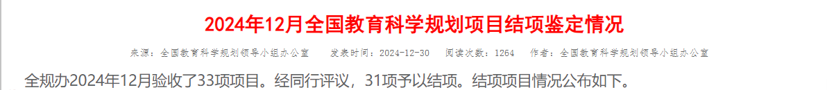 近日,全国教育科学规划领导小组办公室发布《2024年12月全国教育科学规划项目结项鉴定情况》,偷拍论坛