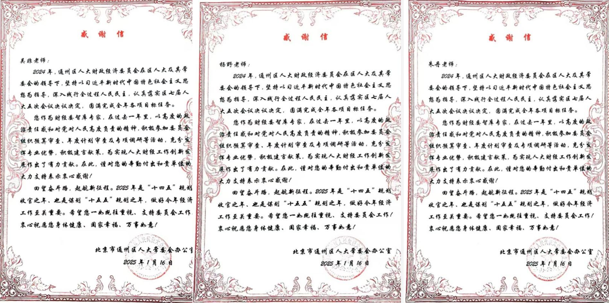 相关教师在2024年担任通州区人大常委会财经委智库专家,“以高度的政治责任感和对党对人民高度负责的精神,积极参加委员会组织预算审查、年度计划审查及专项调研等活动,充分发挥了团队人员专业优势,积极建言献策,为实现区人大财经工作创新发展作出了有力贡献”。通州区人大常委会希望未来偷拍论坛