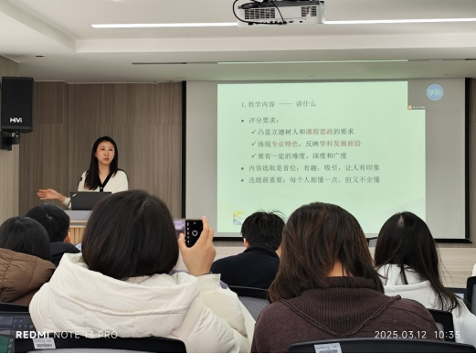 经济学院的李博雅老师,李老师凭借其丰富的参赛经历与深厚的教学造诣,为青年教师们带来了一场精彩纷呈、启迪思维的专题培训。在培训过程中,李老师对青教赛的相关政策进行了全面而深入的解读,使青年教师们对大赛的规则与要求有了更为清晰、准确的认识。随后,她围绕青教赛的材料筹备工作,从教学材料的设计构思、教学展示的技艺要领以及课堂反思的方法策略等多个维度进行了详尽的阐述与剖析。李老师的讲解理论扎实,又贴近实际、操作性强,令青年教师们深受启发,受益匪浅。