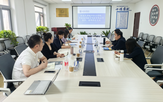 张军院长、王美英副院长,会计系朱丹老师参加,中联集团教育科技有限公司刘春梅副总裁、天津负责人王延州出席了会议。