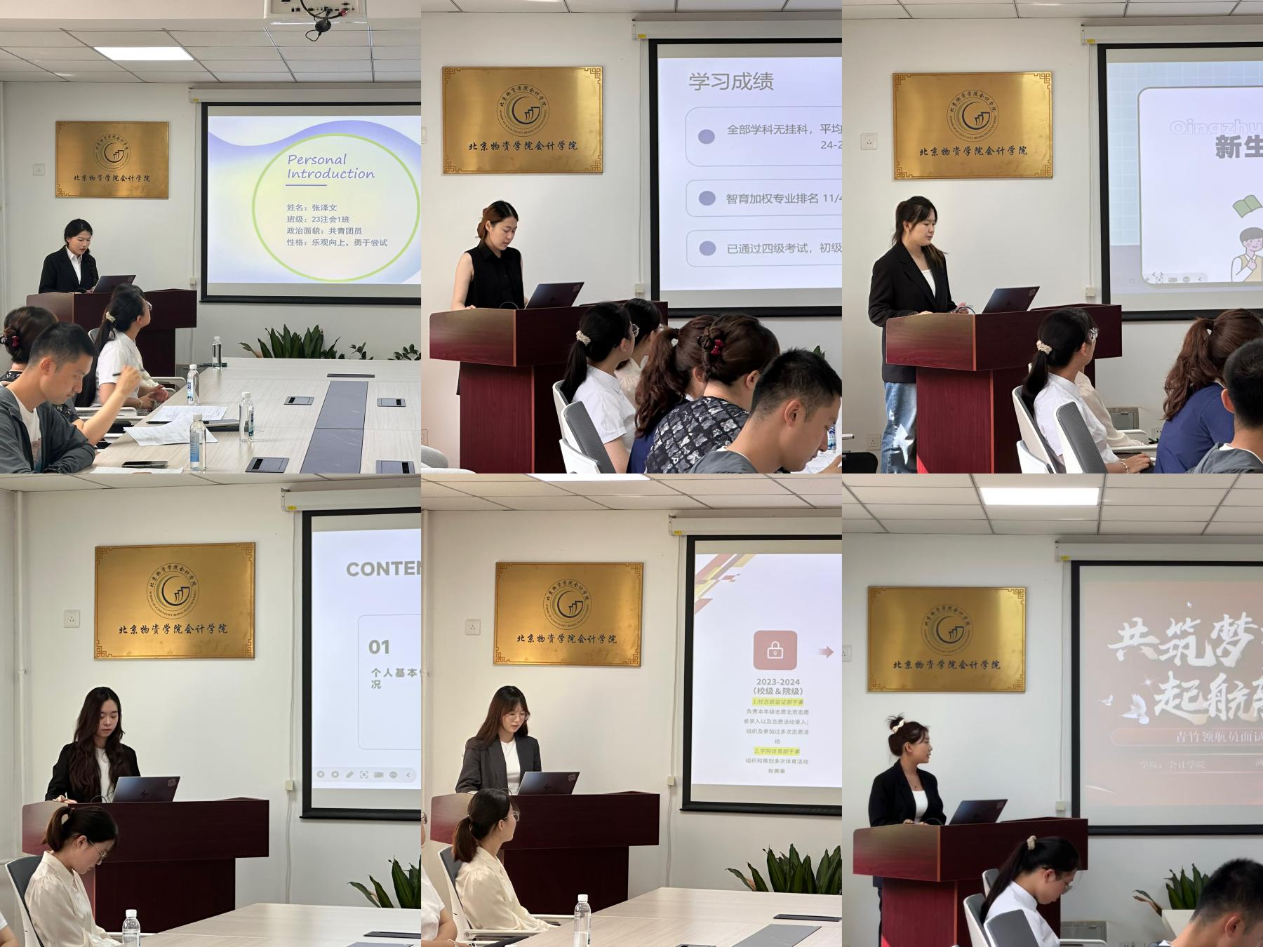 面试环节,35名经党支部推荐的候选人依次登台,围绕学业成绩、实践经历与工作设想等方面进行了展示。在答辩环节,评委聚焦新生入学适应、防诈骗、校园安全、宿舍矛盾调解、学风班风引导等方面的问题进行提问。其中,往届班导重点结合去年工作中遇到的实际问题进行了提问与指导。培训阶段,辅导员梁昀老师系统解读了“青竹领航计划”工作职责,带领同学们梳理了“思想引领-学业指导-文化建设”的工作思路与要求。
