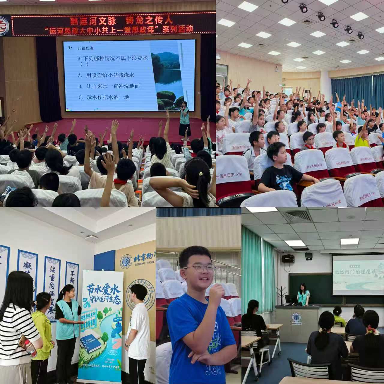 实践团多次前往龙旺庄小学,开展“融运河文脉,铸龙之传人”主题实践活动。针对小学生的认知特点,团队成员精心设计动画视频、故事讲述与互动问答环节,以轻松有趣的方式介绍运河文化与节水知识。现场展示了团队自主设计的宣传海报,并组织“运河知识闯关”趣味问答,学生们踊跃参与,在愉快的氛围中增强了对运河保护及节水行动的理解与认同。
