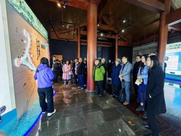 抵达大运河畔后,全体人员在大光楼前集合,在北运河管理处负责人员讲解中走进大光楼进行参观学习,展览馆内陈列着漕运历史图文、古船模型、漕粮计量工具等展品,生动还原了古代漕运“千里转输、仓廪实天下安”的历史场景。