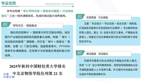 的国家级一流本科专业建设点-会计学专业成立,构建了“政府审计+社会审计+内部审计”三维培养体系,强化对国家审计、社会审计、大型企事业单位和金融机构内部审计岗位能力的培养,具有起点高、定位高的优势。该专业构建了“审计学科内核+数智技术赋能+行业特色强化”三位一体的课程体系,形成阶梯式能力培养架构。近年来,偷拍论坛
