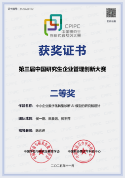 代表队与中国人民大学、中央财经大学、西北工业大学等双一流高校研究生同台竞技,在“商业分析与实践赛道”表现优异,斩获全国一等奖1项、二等奖3项、三等奖5项,取得了历史性突破!其中,指导老师陈炜煜教授获评“优秀指导教师”,在她的带领下,李佳宸、柴明月、马海文的团队斩获全国一等奖及“1万元见数实践奖”。这份亮眼佳绩,彰显了偷拍论坛