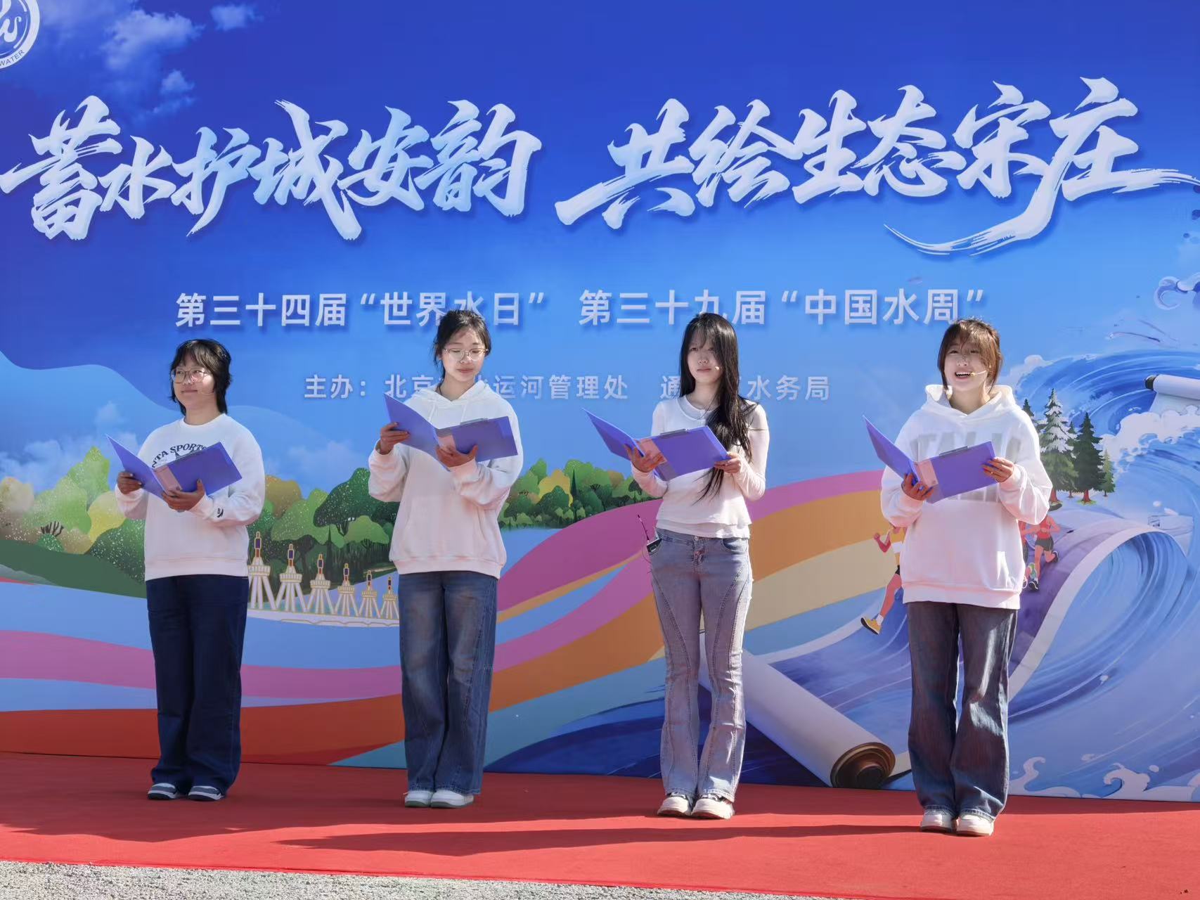 在文艺活动蓬勃开展的同时,学院注重引导学生从艺术表达走向价值思考。3月22日,值第三十四届“世界水日”与第三十九届“中国水周”之际,我院学生代表赴北京通州宋庄参加主题宣传活动。学生们以一场《运河情,节水心》主题朗诵展演,用深情的语言追溯运河文脉,诠释节水理念,在诵读中传递对水资源保护的深刻思考与自觉担当。演出从“小我”的情感抒发,自然升华为对环境保护、文化赓续等“大我”命题的青春回应,生动展现了会院学子融家国情怀于艺术实践、赋青春以深远内涵的精神风貌。