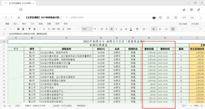 继续联合高途教育集团为本校学生开放2023初级会计备考高效持证班课程,包括《初级会计实务》与《经济法基础》两门课程,主要内容、学时、课程进度及更新安排如下3图所示。
