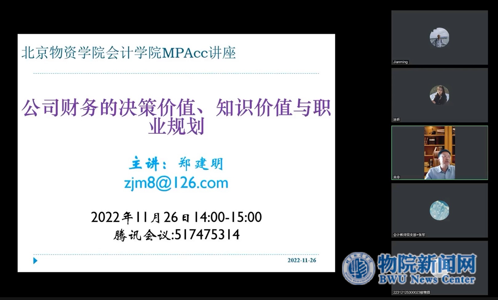 邀请,为学院师生做了题为“公司财务的决策价值、知识价值与职业规划”的学术讲座。讲座采用线上方式进行,共80余位师生聆听了讲座。偷拍论坛
