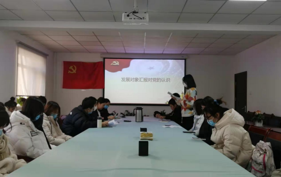 会议第二项,七名发展对象依次向党支部进行汇报,主要包括对党的认识、入党动机、个人生活学习情况等。七位同志每个人的眼神中都透露着对党的热爱,入党决心的坚定。同时,在每位发展对象介绍完自己的情况后,支部委员也对该同学这一段时期的考察情况进行了全面客观的介绍与评价,与会党员们也发表了意见。