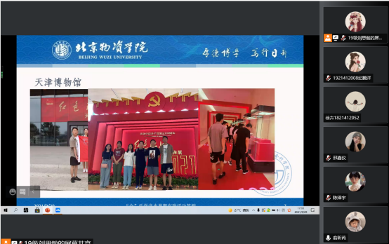 首先,由支部党员俞盺芮同学带领大家进行八月份的理论学习,主题为“‘深学实悟’红色百年铸魂行动”,内容是向大家分享党支部于暑期参加的社会实践活动。实践活动主要分为三部分:红色打卡、红色“1+1”和听老党员讲故事。红色打卡是去近京的一些红色景点参观学习,红色1+1部分是我们团队与大兴庄党支部开展的红色“1+1”共建活动。