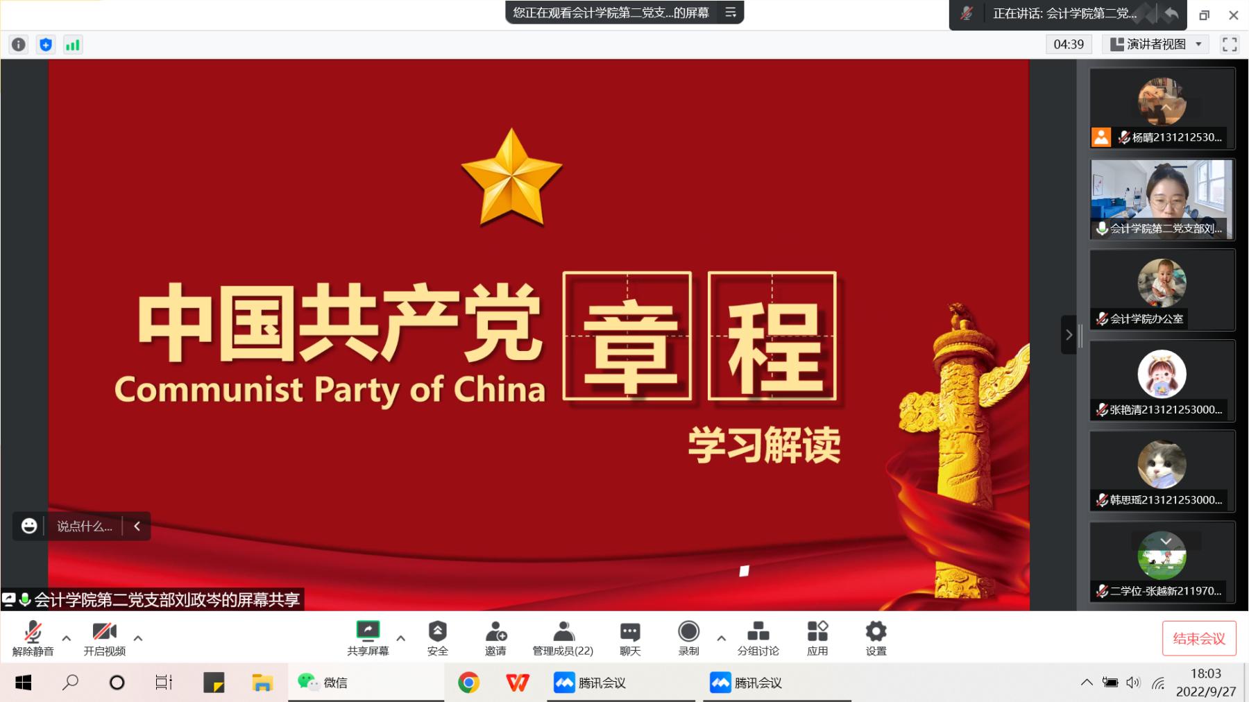 研究生第二党支部以线上腾讯会议形式召开了2022年9月理论学习大会,会议由支部书记张飚老师主持,支部全体党员参加学习。