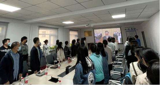 教师党员、学生党员代表在科研楼212会议室一同观看了开幕会,认真聆听了习近平总书记代表第十九届中央委员会向党的二十大所作的报告。