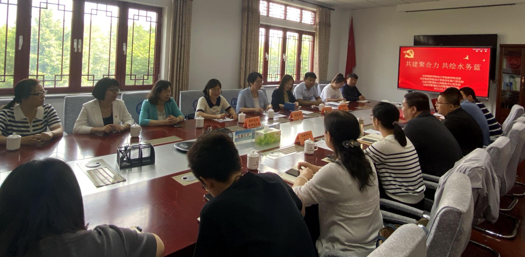 学生第六党支部书记张飚老师介绍了支部开展的党建工作以及涌现的优秀学生党员代表,提出通过支部共建在水资源保护与宣传方面共同开展活动,服务于生态保护的同时提升学生志愿服务意识和环保责任。北运河管理处公共服务中心党支部书记郭珊珊介绍了公共服务中心开展的工作及党支部的建设情况,认为该中心与学生党支部在很多方面有契合点,可以联合开展活动,例如开展河湖保护宣传、志愿巡河、节水宣传、运河文化宣讲等。