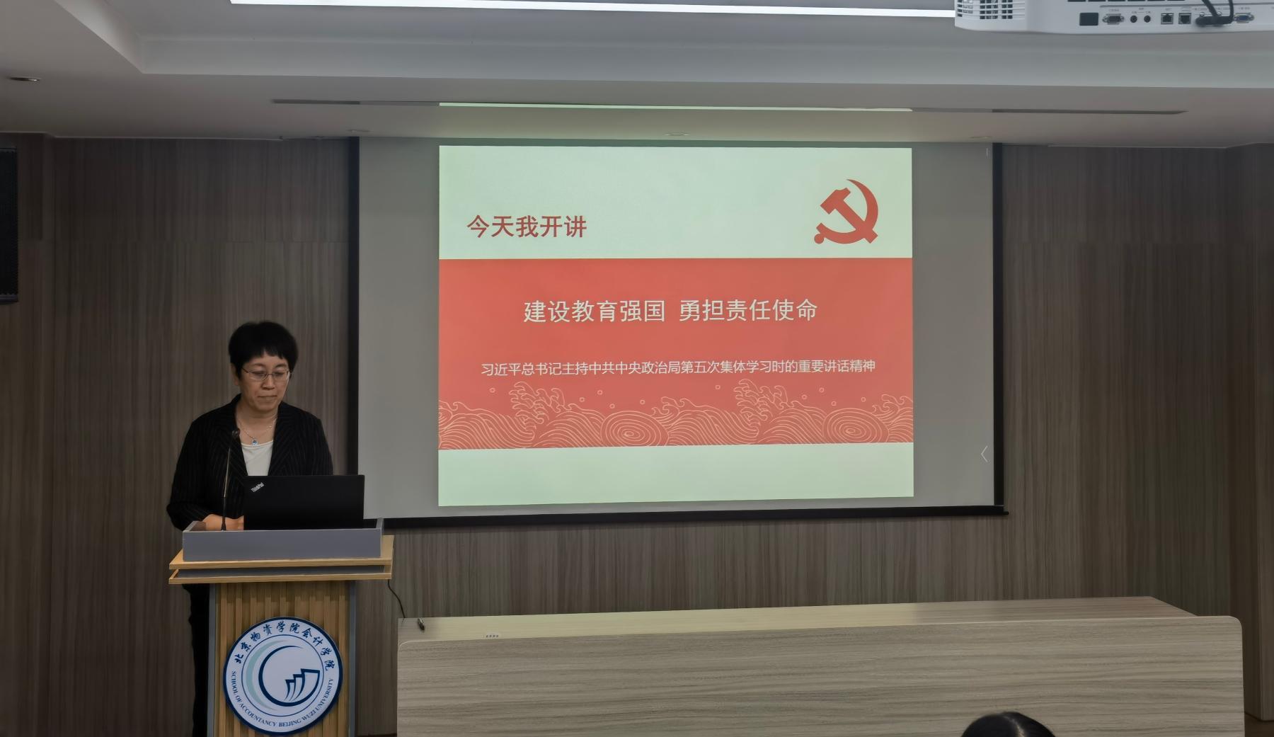在科研楼党员之家举行了“今天我开讲”活动。会议由学院副院长王美英主持,学校教务处副处长陈娟、学院党政领导班子及全体教师参加了会议。