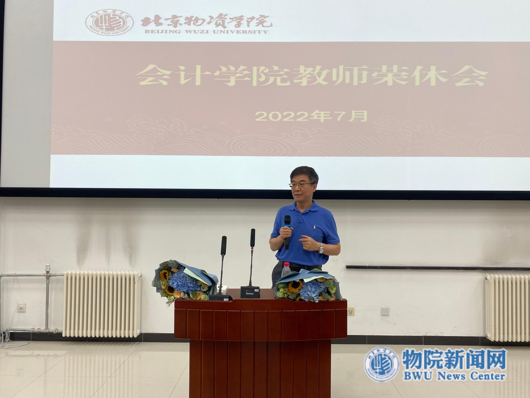 副院长刘永胜代表学校对两位退休教师几十年如一日在教学岗位的辛勤工作和做出的贡献表示肯定和感谢,他表示,退休是人生的一个重要转折点,但也是人生新的开始,祝愿两位教师退休生活充实、幸福,同时也希望退休教师可以继续为学院和学校的发展积极发光发热,退休教师们为青年教师在教学科研、服务奉献、职业道德等方面都做出了良好的榜样,希望青年教师多向老教师学习,不断提高自己,最大程度发挥自己的力量。