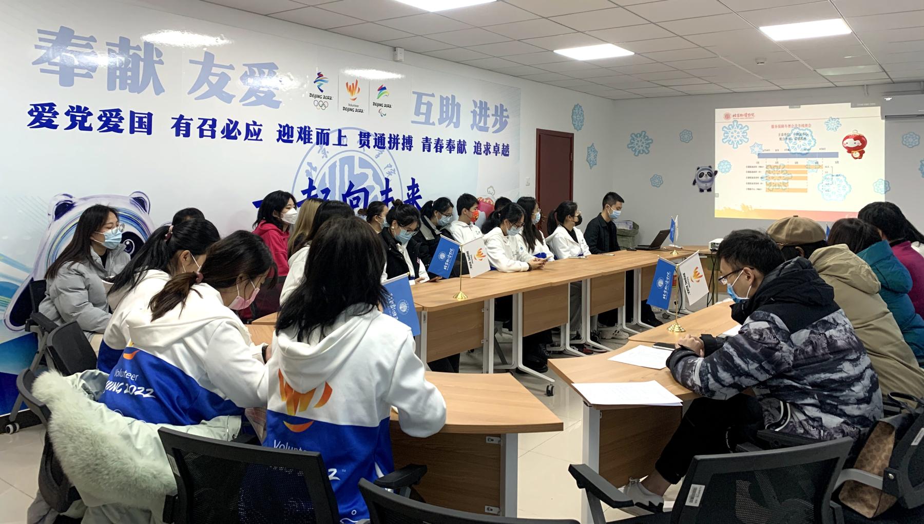 团委书记赵御彤老师介绍了整体冬奥志愿者选拔、配备情况。李琪、郎淼两位学校冬奥闭环和非闭环志愿者总负责人分别介绍了闭环和非闭环志愿者的工作岗位情况。
