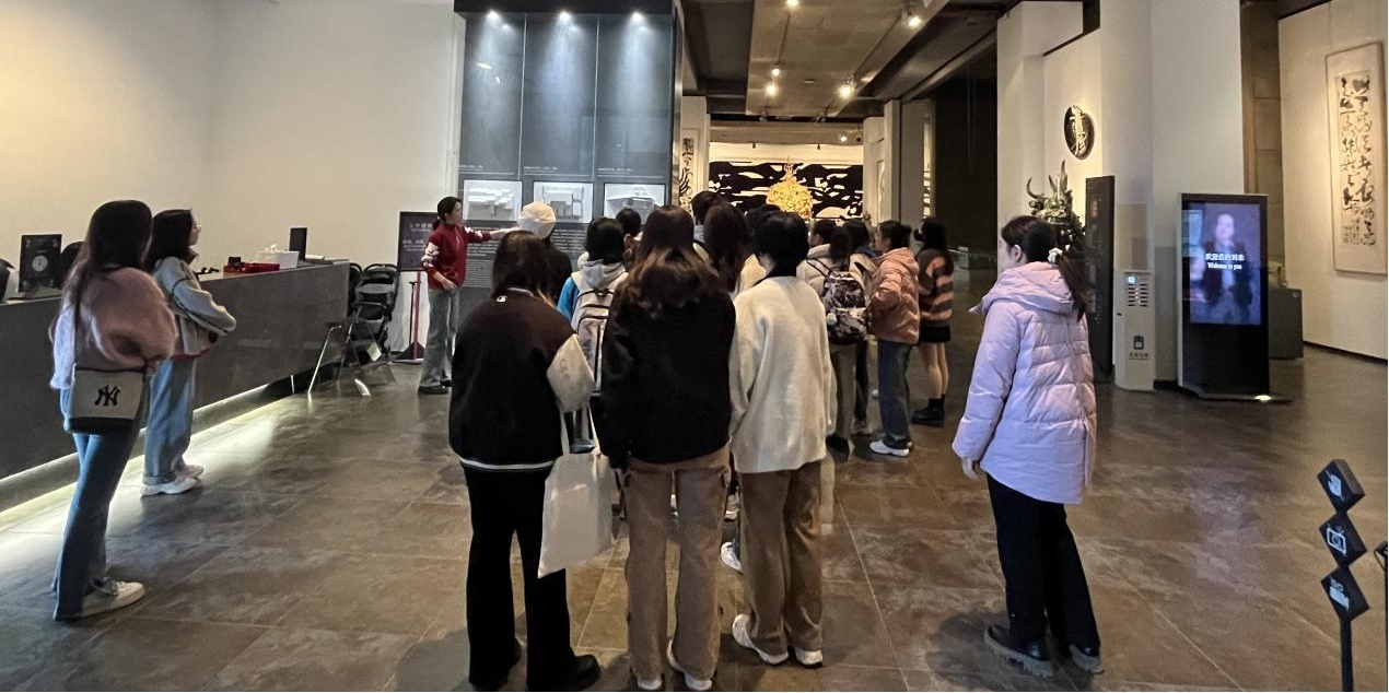 接下来,师生们共同前往韩美林艺术馆。讲解员介绍馆内所有藏品均为韩美林先生向政府的无偿赠与。在书法厅,看到韩先生创作的“民胞物与”书法作品,“民为同胞,物为同类”,韩美林先生表达出“是百姓养育了他,愿意将他的一切奉献给祖国和人民。”