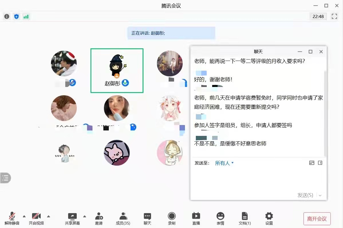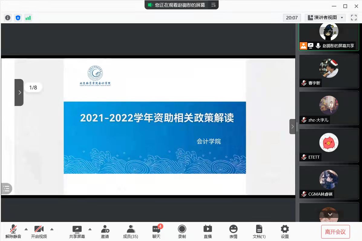 负责资助工作赵御彤老师主持。
