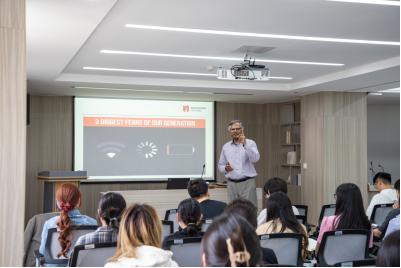 Rahat Munir教授以马斯洛需求理论为切入点,讲述了不同时代学生对职业发展的核心诉求,并强调科技革新对职业形态的颠覆性作用。他提到,人工智能、区块链等技术正加速自动化进程,部分传统职业面临转型,但同时也催生了新兴领域与技能需求。对此,他建议学生关注跨学科能力培养,提升适应力以应对快速变化的职场环境。